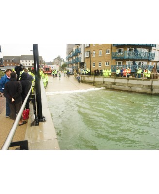 Insta-Dam est une barrière anti-inondations qui permet de bloquer instantanément les fluides (eau, huile, produits chimiques et autre) sans installation préalable. Longueur : 120cm.